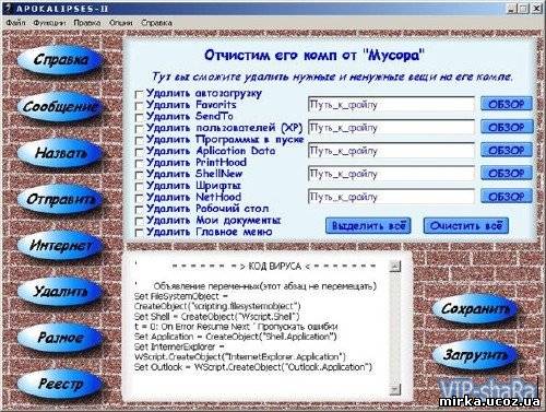 Программа предназначена для створення вірусів бідь якої складності (трояни, черв'яки та інші)УВАГА. Дана программа використовується не для взому ліцензійних программ та не для порушення роботи РС. Автори программи не несуть відповідальності за створенні Вами віруси. |